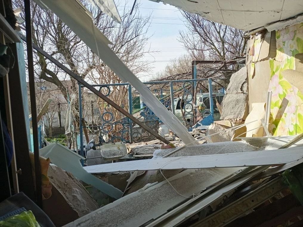 Сброс дрона на жилой дом. Пострадавших нет. В доме рухнула крыша. Разрушена одна из стен.