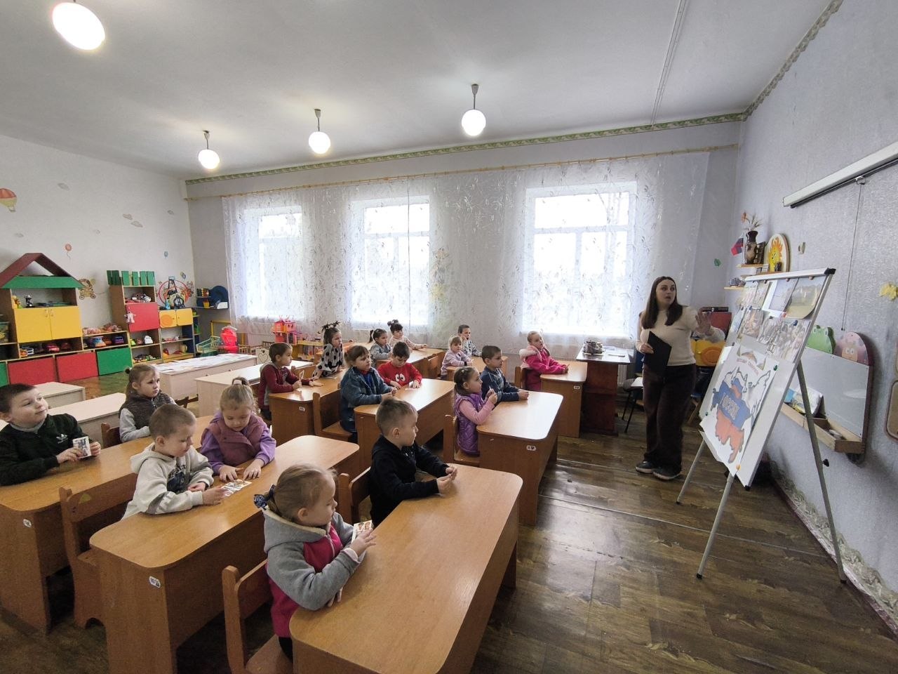 В рамках первой встречи малышам рассказали о многонациональном характере Российского государства. Дети познакомились с русским и якутским народами, их культурными особенностями, национальными костюмами и традициями.