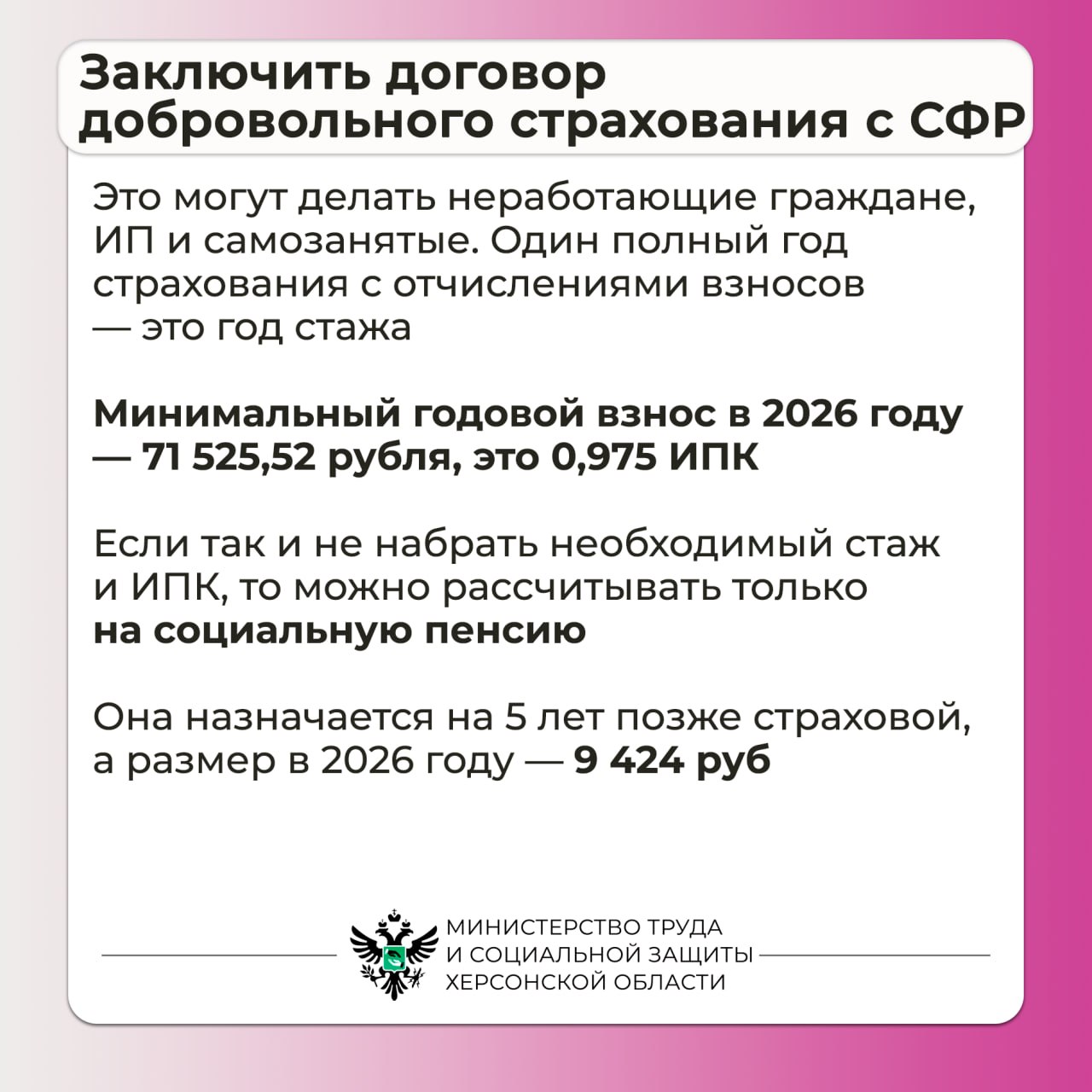 Заключить договор добровольного страхования с СФР.