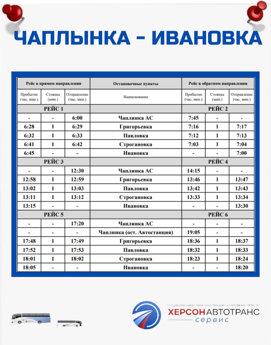 N 141 ЧАПЛИНКА – ИВАНОВКА. Рейс выполняется: понедельник - суббота