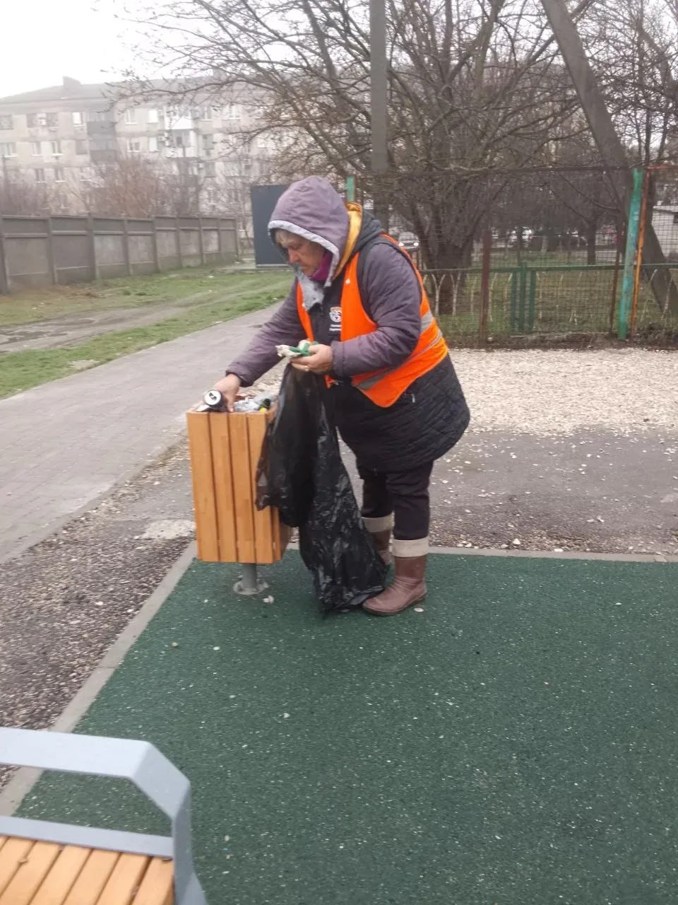 На улицах Бр. Коваленко, Курасова и 40 лет Победы проведена очистка урн на спортивных и детских площадках, а также во дворах.