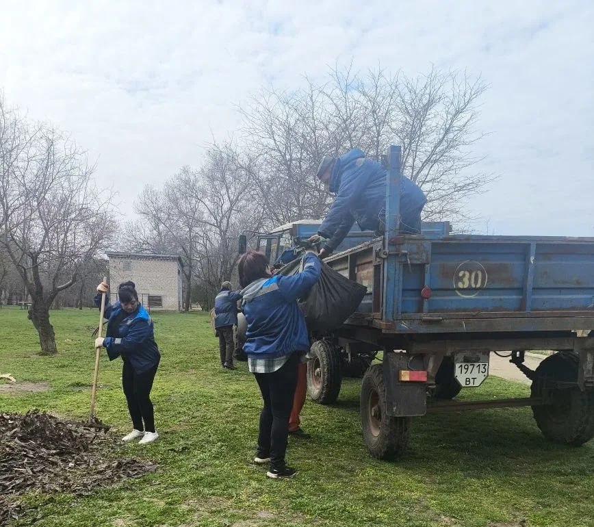 В с. Крестовка, Надеждовка, пгт Аскания-Нова продолжают уборку мусора на улицах.
