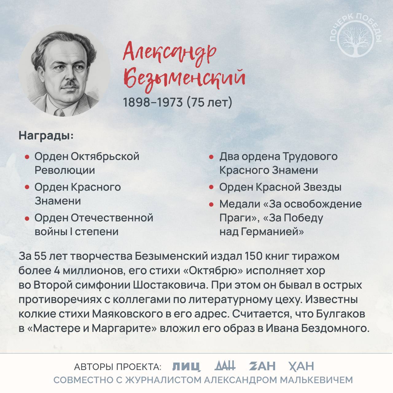 О писателе, чьи стихи «Октябрю» исполняет хор во Второй симфонии Шостаковича, с кого Булгаков для «Мастера и Маргариты» срисовал образ Ивана Бездомного, читайте в новом материале.