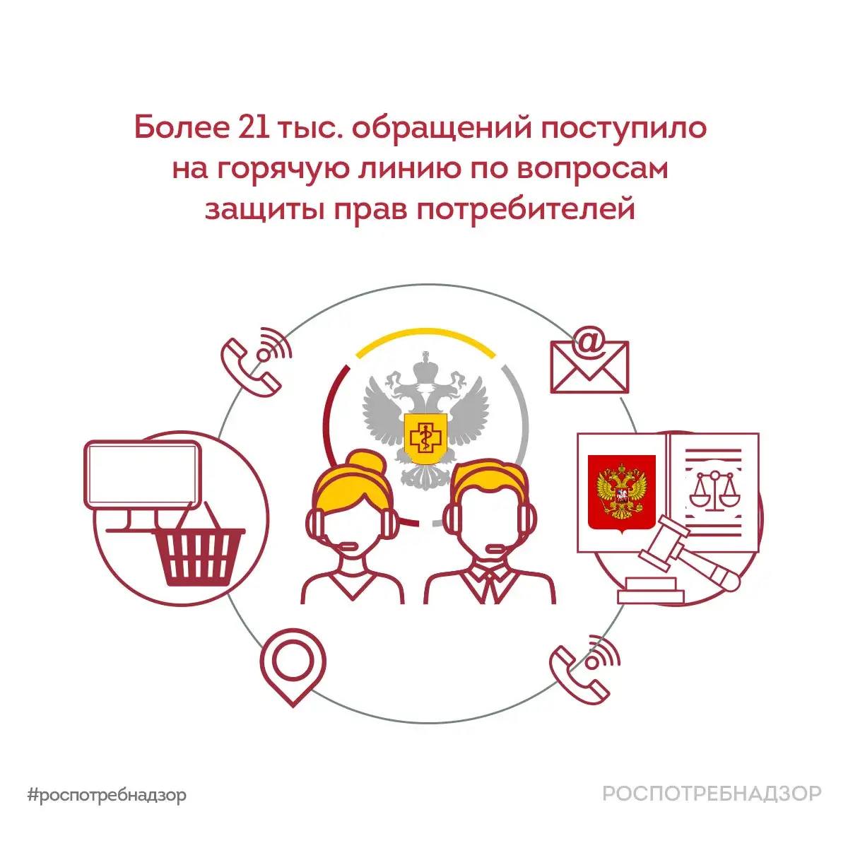 Роспотребнадзор: более 21 тыс. обращений поступило на горячую линию по вопросам защиты прав потребителей