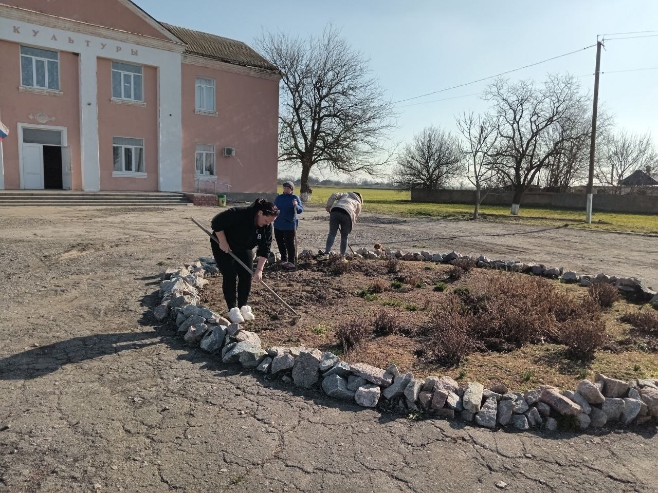 Сотрудники учреждений культуры организовали и провели субботник на прилегающей территории клуба. Они убрали сухую листву, мусор и привели в порядок клумбы.