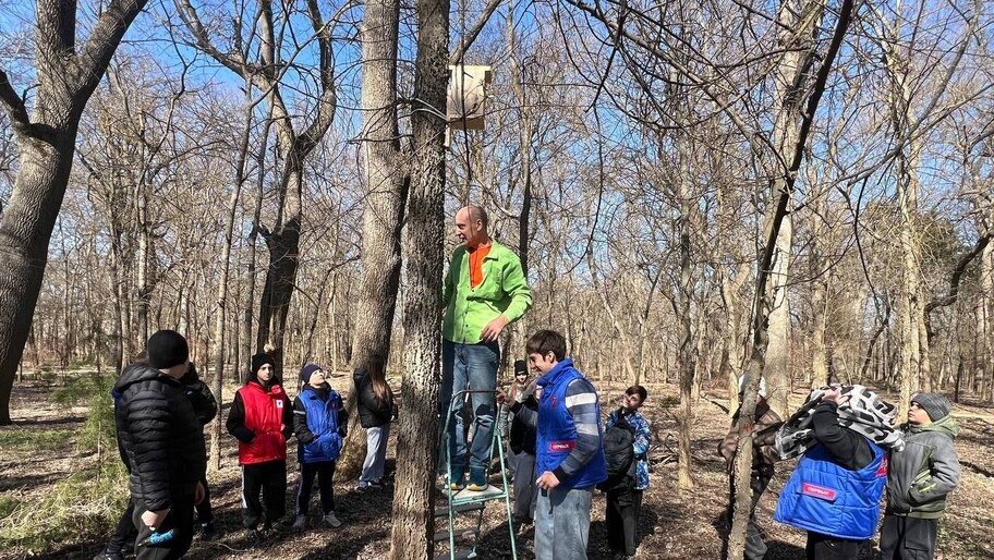 Детский писатель Сорокин развесил со школьниками скворечники в заповеднике «Аскания-Нова»