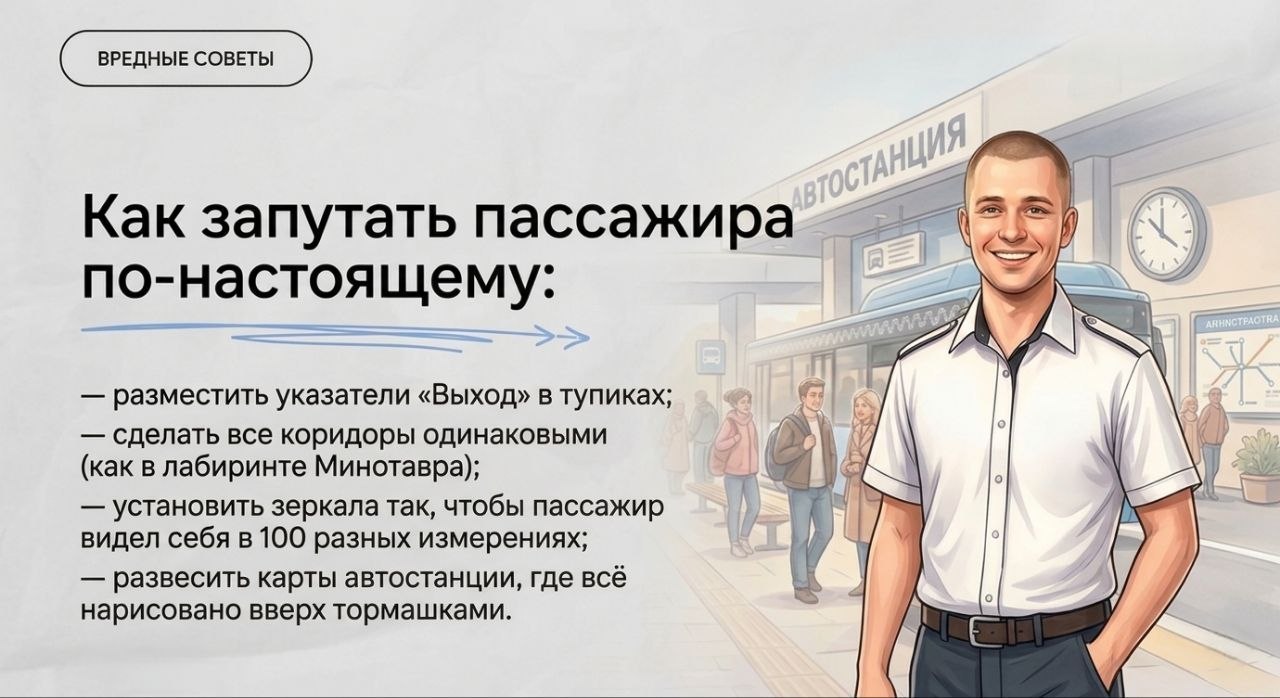 Сегодня, 1 апреля, мы откладываем в сторону все серьёзные инструкции и официальные регламенты, потому что в мире есть два места, где навигация должна быть идеальной, но иногда превращается в квест, - это автостанция и лабиринт Минотавра