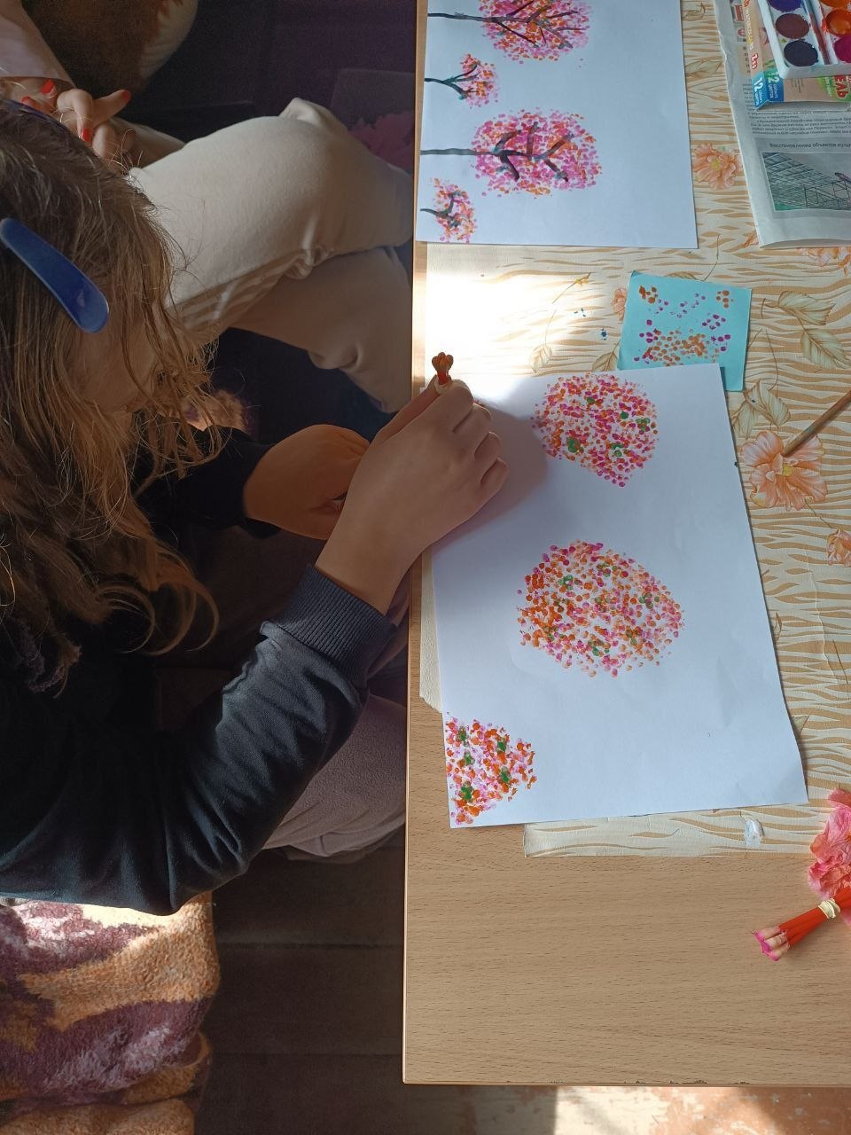 В Украинском сельском клубе прошел мастер-класс по рисованию дерева сакуры в нетрадиционной технике.