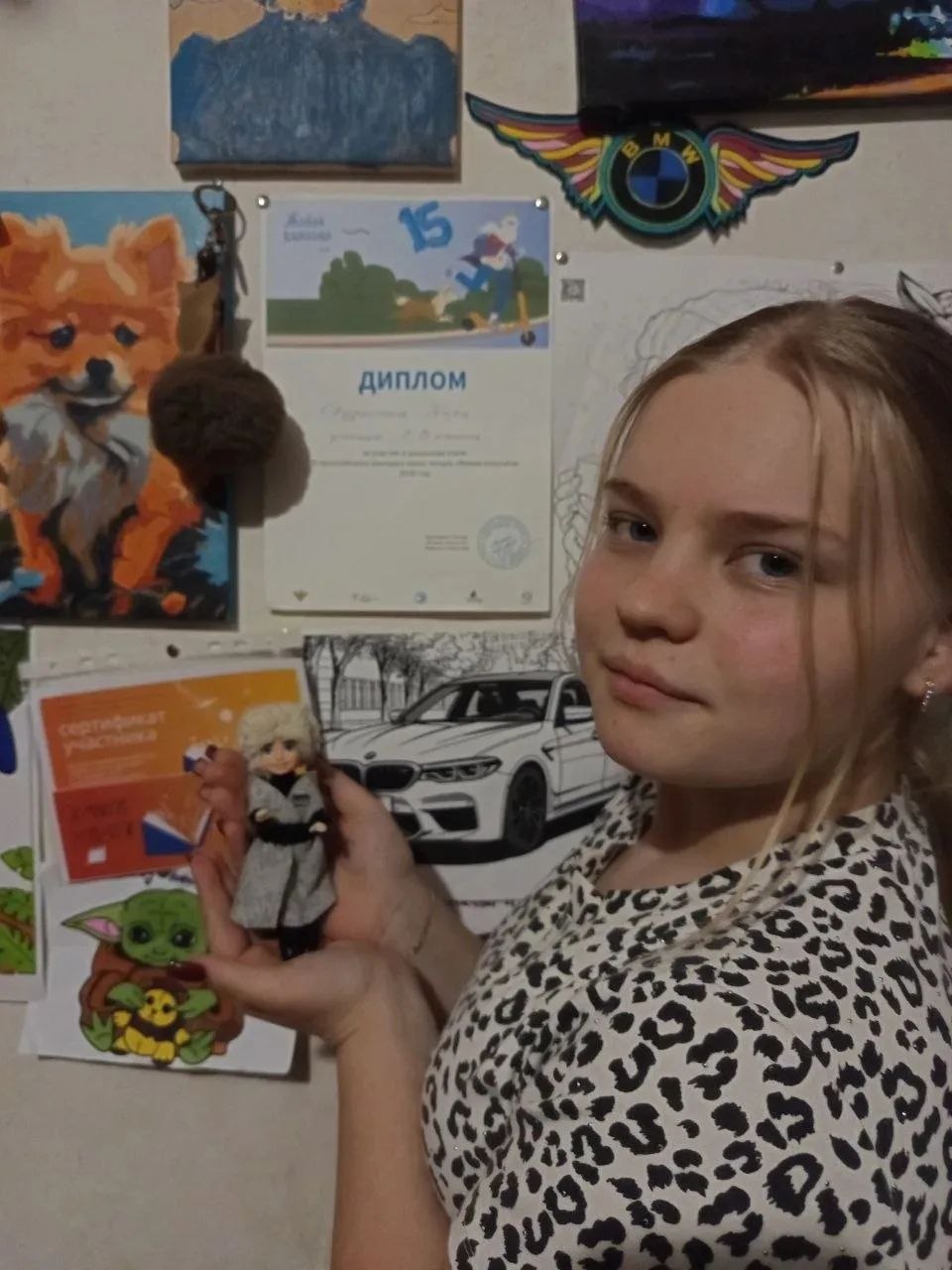 Сегодня коллекция кукол пополнилась уникальным экспонатом — мужской фигуркой в дагестанском народном костюме. Автором и дарителем выступила ученица 7-В класса ГБОУ ХО «Чаплинская школа №1 Чаплинского района», активистка «Движения Первых» - Кира Свидинская.