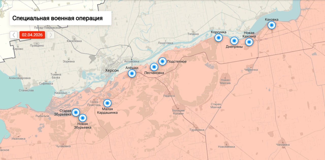 Утренняя сводка по обстрелам левобережья Херсонской области на 09:00 утра 03 апреля.