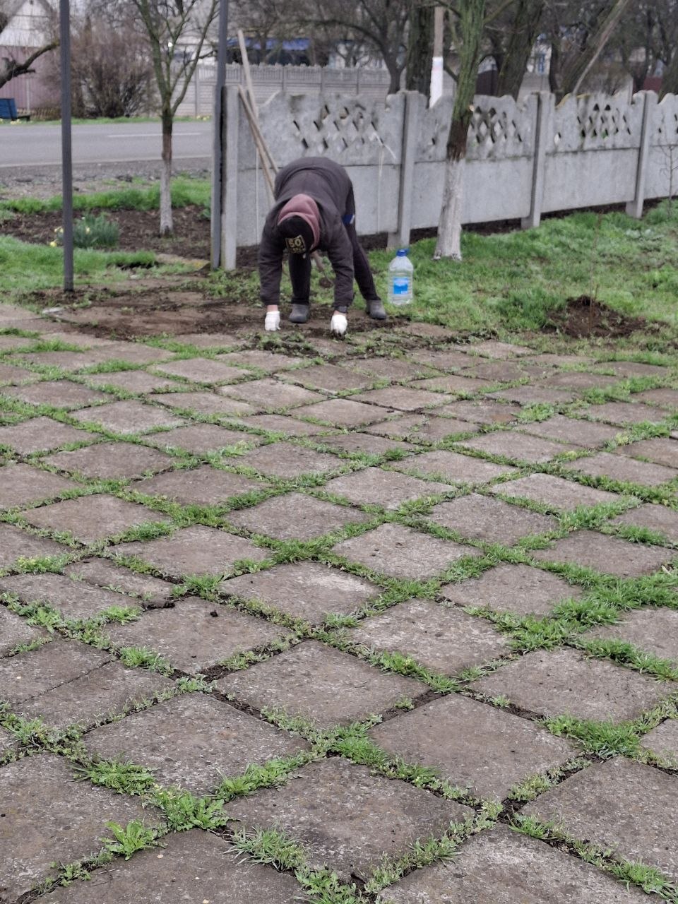 начаты работы по уборке порослей между плиткой.