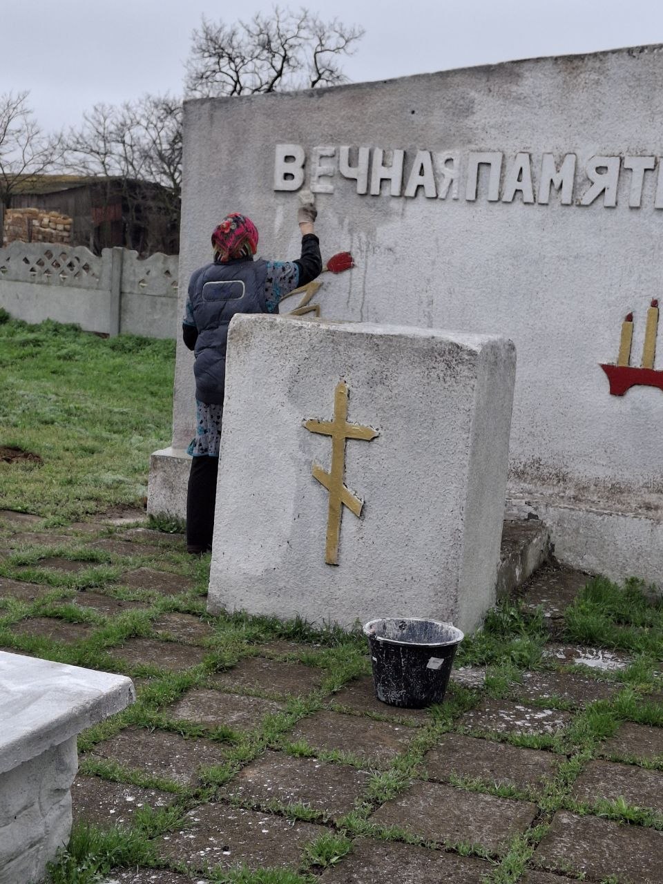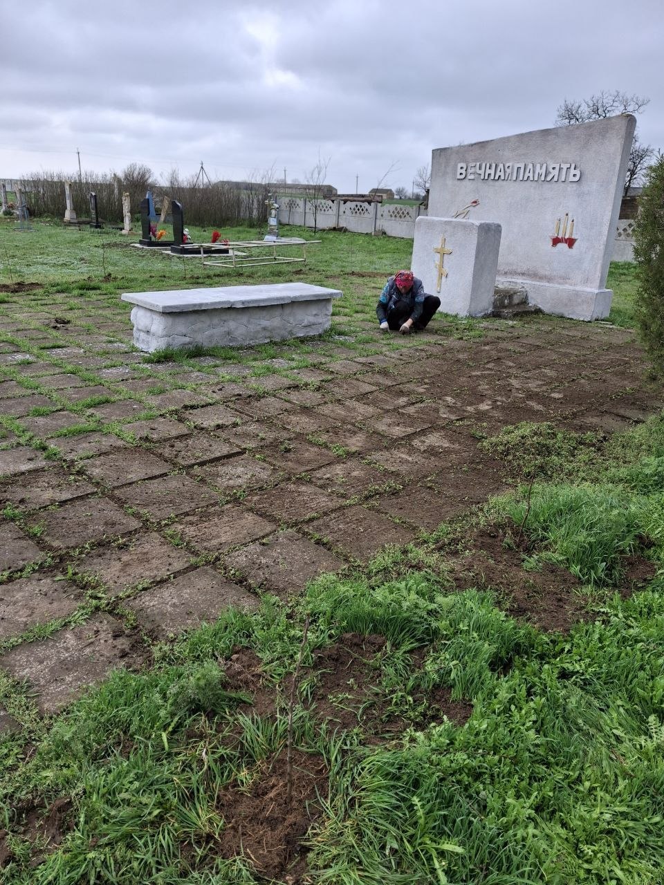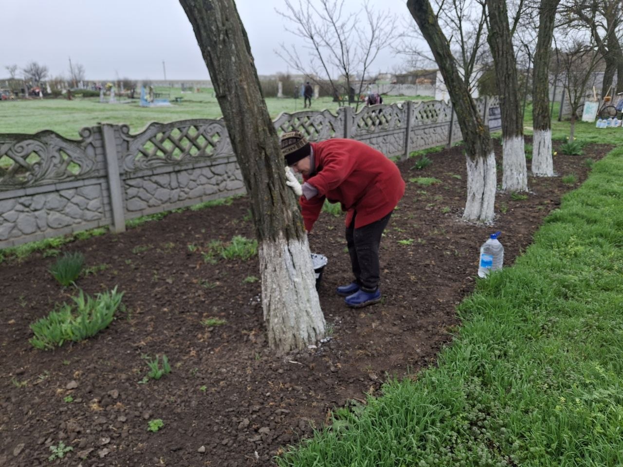 побелены деревья и стелла кладбища с. Шотовка,