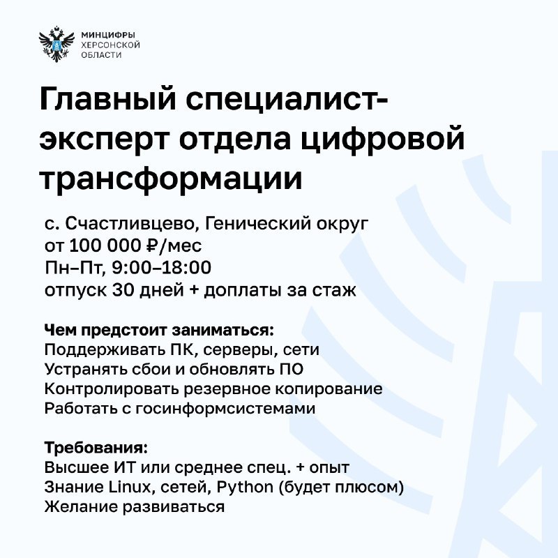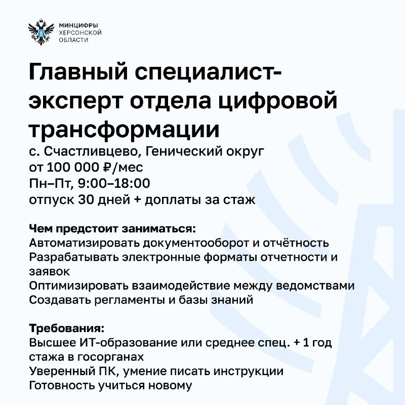 Минцифры и подведомственные организации открыты для новых сотрудников. У нас — достойная зарплата, соцпакет, возможности для роста и обучения. И проекты, которые действительно меняют жизнь региона.