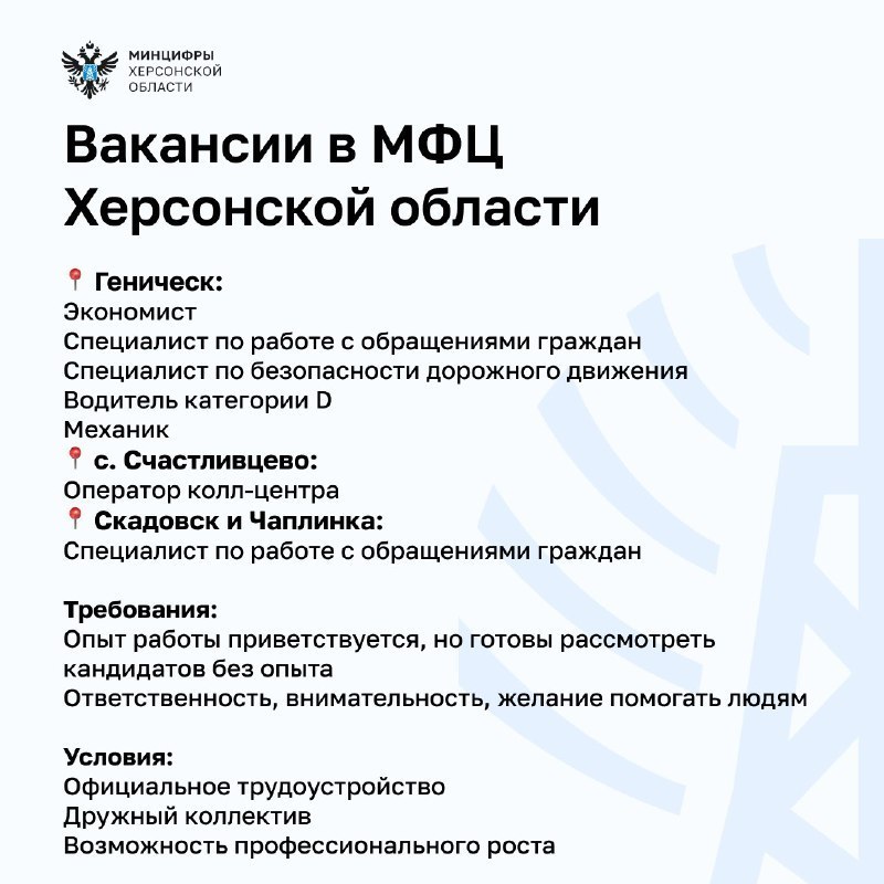 Резюме направляйте на почту: job.mfc@khogov.ru