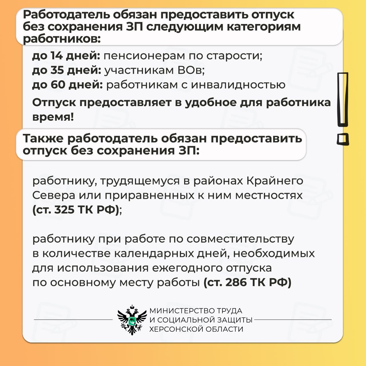 По семейным и другим уважительным причинам работнику, подавшему письменное заявление, может быть предоставлен отпуск без сохранения заработной платы.