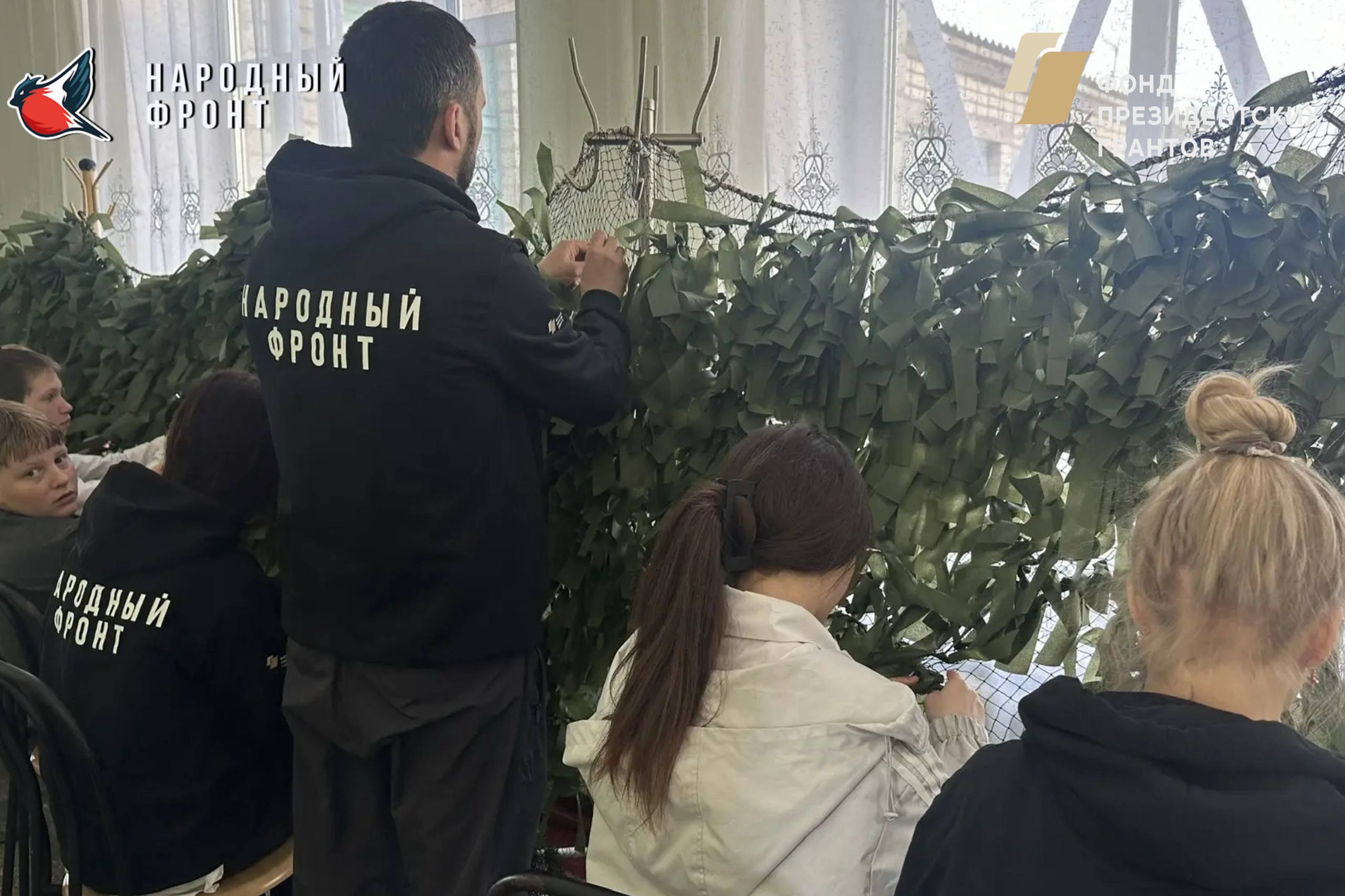 Команда Молодёжки Народного фронта провела особенный день. Вместе с ребятами из местной школы мы занимались важным и ответственным делом — плели маскировочные сети для наших защитников.
