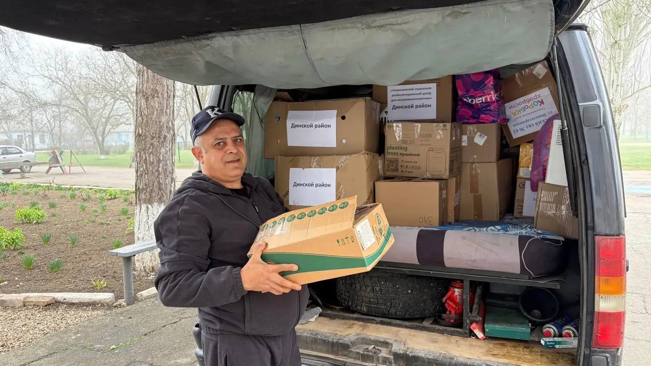 Груз доставил и передал ребятам Степан Миракян, руководитель Краснодарской краевой военно-исторической общественной организации «Гвардия». С первых дней СВО он занимается организацией и доставкой гуманитарной помощи, в том числе жителям новых территорий.