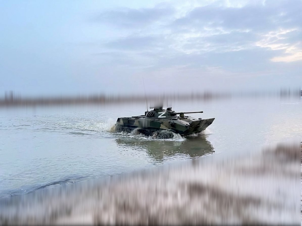 В ходе занятий экипажи боевых машин отработали форсирование водной преграды, преодоление искусственных и естественных препятствий, высадка на берег, движение по суше и обратно в той же последовательности.