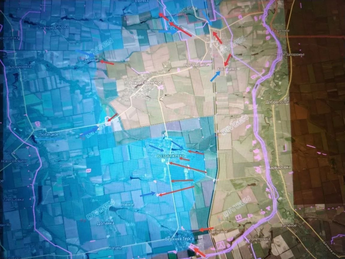 В Запорожской области нашим удалось прорваться около Рождественского и Верхней Терсы. Есть успехи в Воздвижевке.