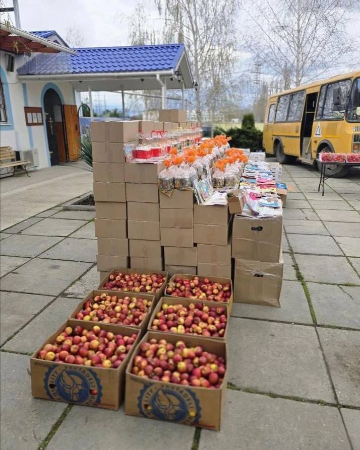 Причём речь не только о куличах. Вместе с ними передали шоколадные яйца, фрукты, домашние угощения, а также письма и подарки от детей из воскресной школы.