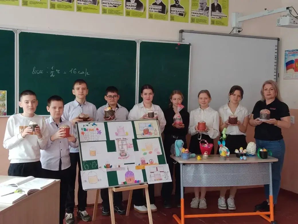 В Григорьевской школе я работаю учителем математики и классным руководителем 6 класса. Проводя занятие, посвященное православному празднику светлой Пасхи, я старалась познакомить ребят с его историей; привить любовь и уважение к православным традициям русского народа. Ребята не остались в стороне. Они приготовили рисунки и поделки на тему Пасхи, и, конечно, главным украшением стола стали куличи, которые ребята принесли с собой.
