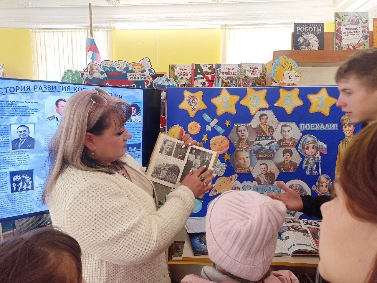 Библиотекарь Светлана Олейник рассказала ребятам, почему именно 12 апреля отмечается День космонавтики, и напомнила о легендарном полете Юрия Алексеевича Гагарина в 1961 году на корабле «Восток1». Присутствующим была представлена презентация «Покорение космоса», которая содержала хронологию ключевых событий и развития отечественной космонавтики, рассказы о выдающихся космонавтах, интересные факты о подготовке космонавтов, жизни на орбите и современных космических станциях.