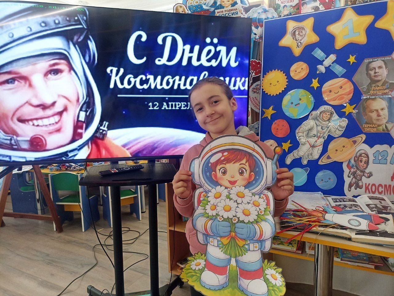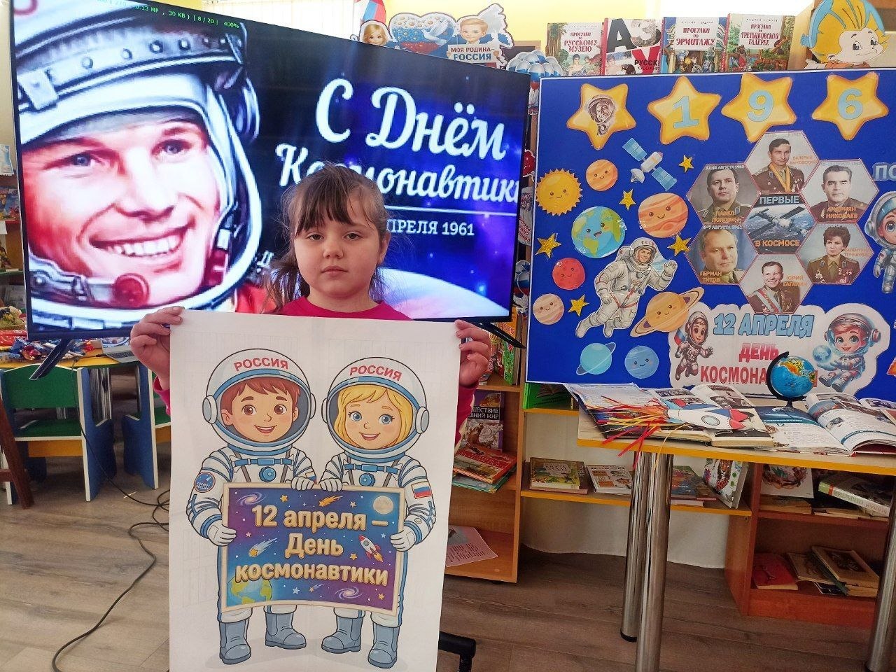 Также в рамках празднования Дня космонавтики в Любимовской библиотеке оформлена книжно-иллюстрированная выставка «Мы - первые!».