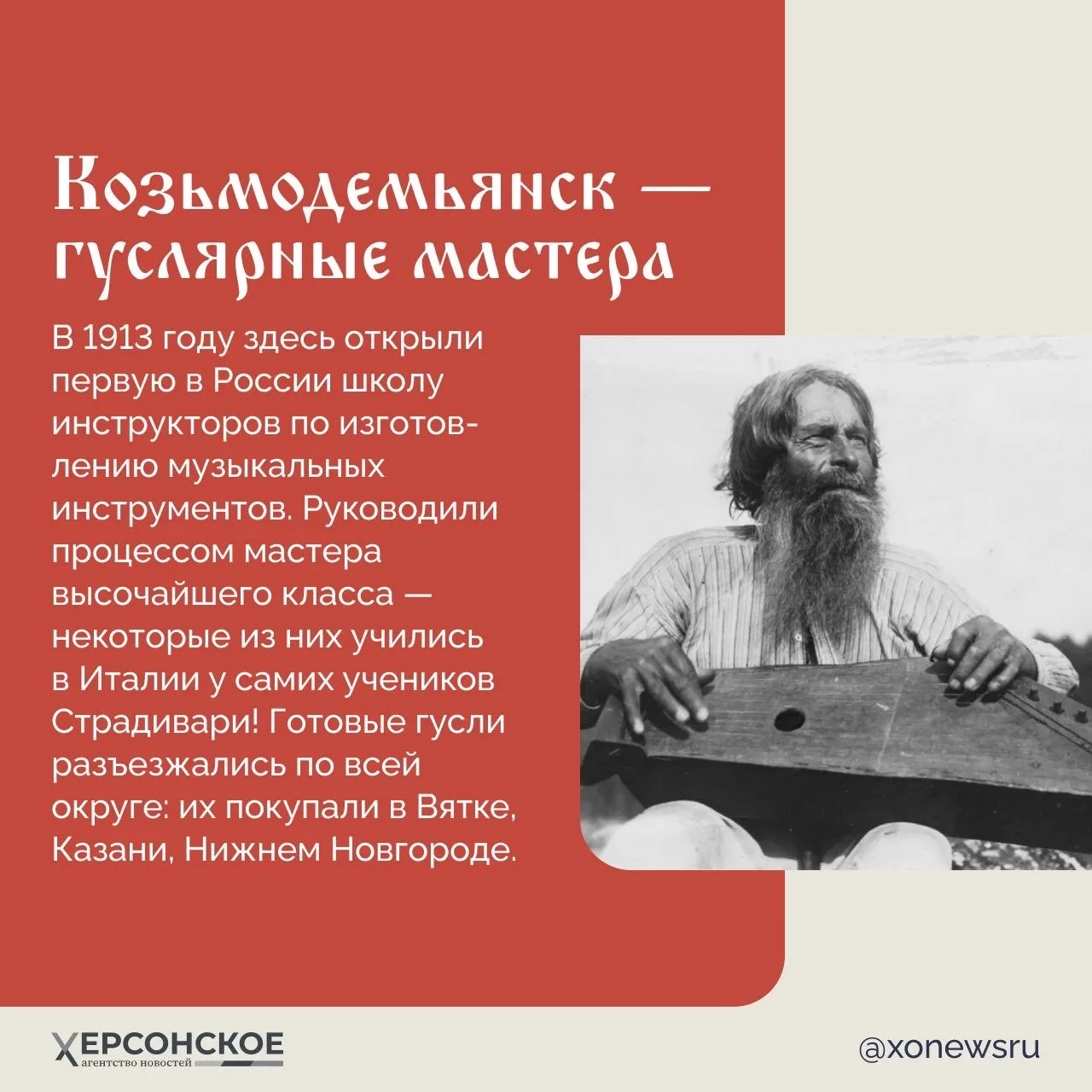Отправимся в Республику Марий Эл, ведь именно здесь родился один из самых древних и сакральных инструментов — гусли. Только здесь их называют кюсле. Марийские гусли — официальный национальный бренд республики.