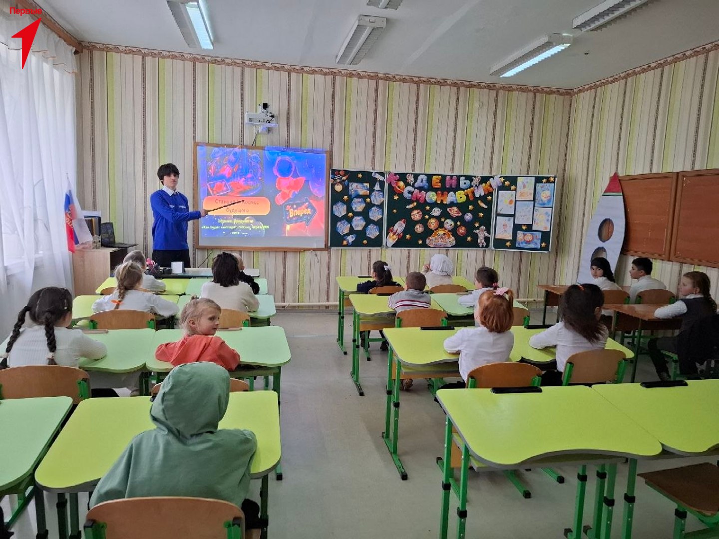 Активисты Движения Первых Чаплинской школы № 2 Чаплинского округа провели тематическое занятие для учеников начальной школы в честь 65-летия полета Юрия Гагарина в космос.