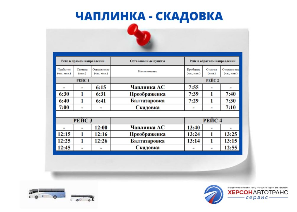 ВНИМАНИЕУважаемые жители и гости Херсонской области!Сообщаем, что с 14 апреля 2026 года вносятся изменения в график движения общественного транспорта по маршрутам: № 141 «Чаплинка АС - Ивановка» № 145 «Чаплинка АС - Скадовка» Ознакомьтесь с...