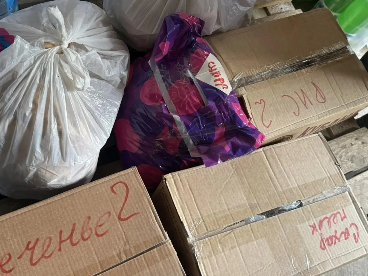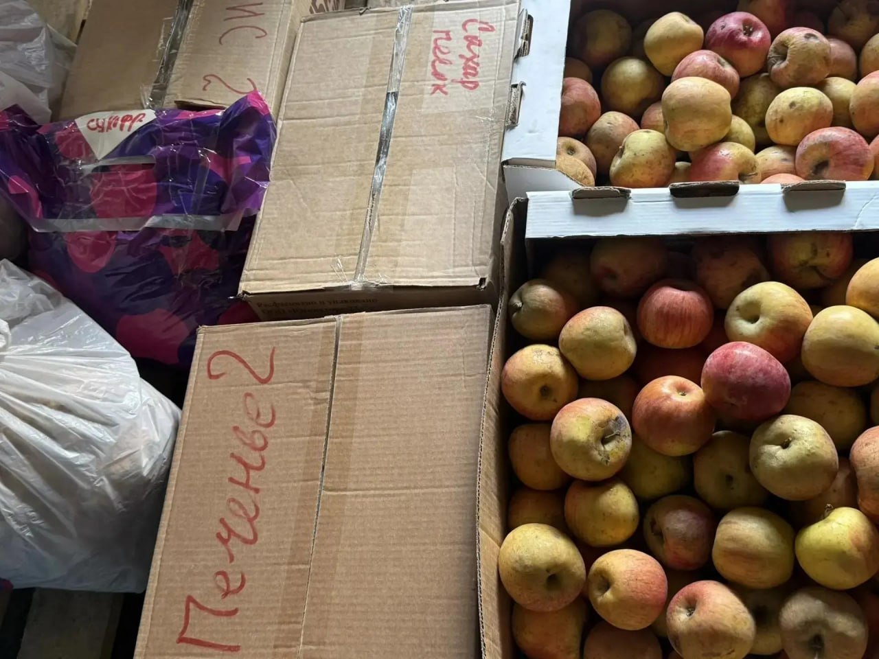 В состав помощи вошли продукты питания, а также предметы первой необходимости и канцелярские принадлежности.