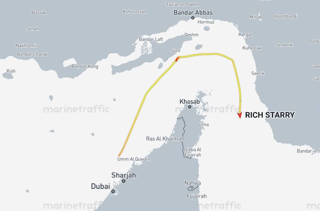 Подсанкционное судно Rich Starry первым прошло через Ормузский пролив после его перекрытия американскими военными. На борту — около 250 тысяч баррелей метанола, экипаж китайский.Следом к проливу идёт ещё одно подсанкционное судно — Murlikishan, ранее перевозившее российскую и иранскую нефть.