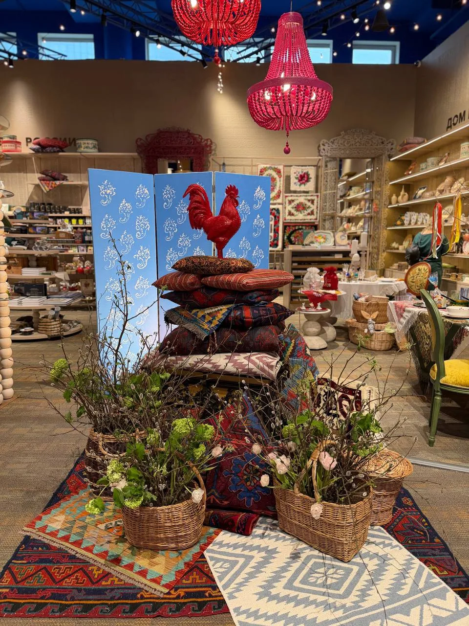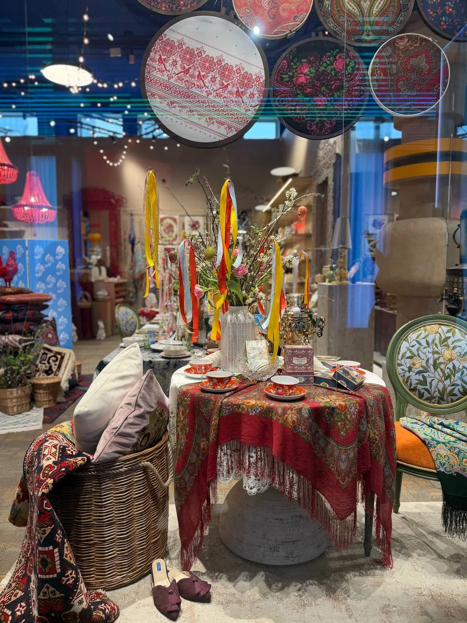 Зарядиться атмосферой и познакомиться с лучшими изделиями российских брендов приглашаем в Универмаг Национального центра. Пространство отражает дух купеческой усадьбы, которая сочетает в себе гостеприимство, роскошь и уважение к традициям. В декоре представлены элементы разных художественных стилей, а на «русском столе» встречаются сразу несколько народных промыслов, подчеркивающих индивидуальность и неповторимость друг друга.