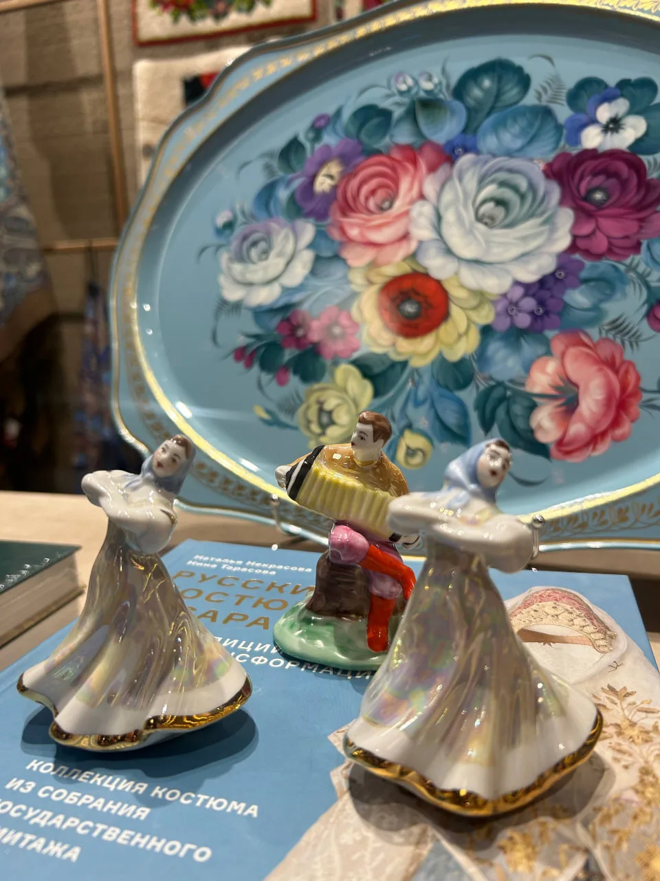 Здесь и жостовские подносы, и дулевский фарфор — чайные пары и фигурки, а также текстиль «Сольба», павлопосадские платки и вкуснейшая коломенская пастила. Приглашаем в Универмаг «Россия» за вдохновением ежедневно, кроме понедельника, с 10:00 до 20:00.