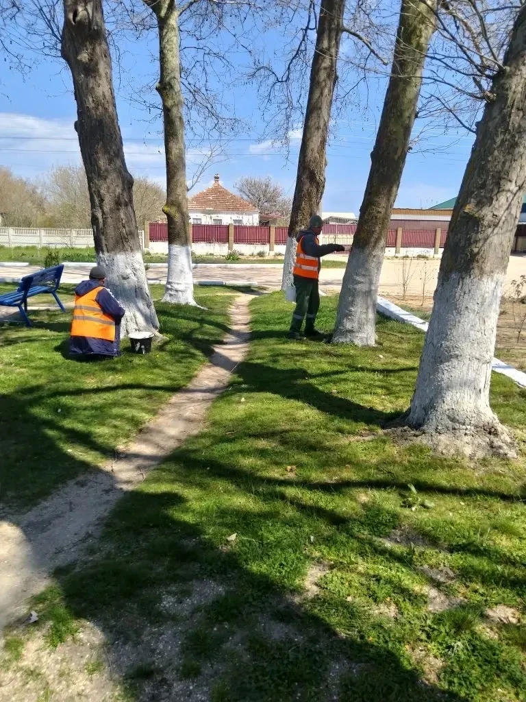 побелка бордюров и деревьев в центральной части села;