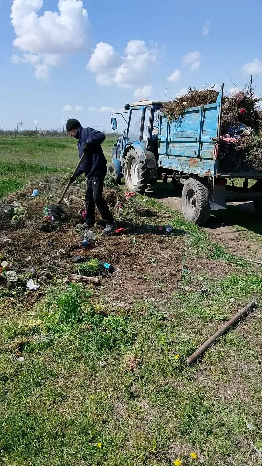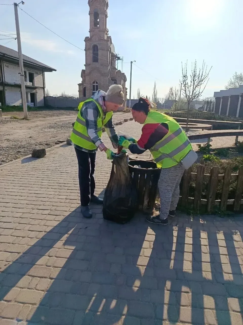 уборка мусора в центральной части села.
