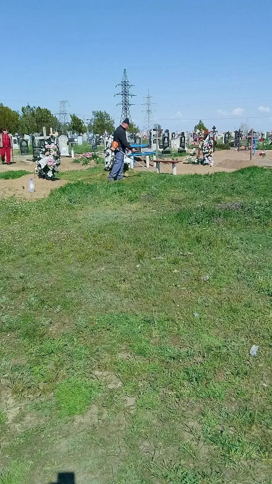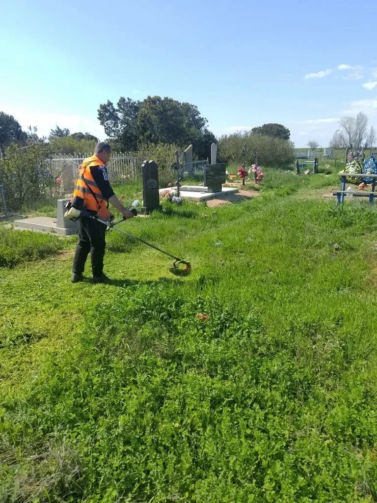 покос травы на территории кладбища.