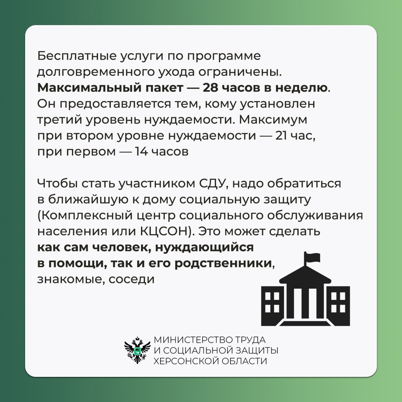 Получить консультации по вопросам системы долговременного ухода в Херсонской области можно по телефонам комплексных центров социального обслуживания населения.