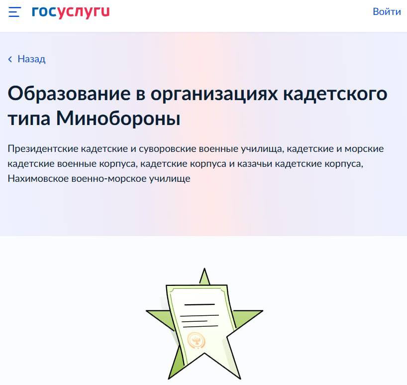 Минобороны РФ запустило на "Госуслугах" раздел для поступления в кадетские и суворовские училища.