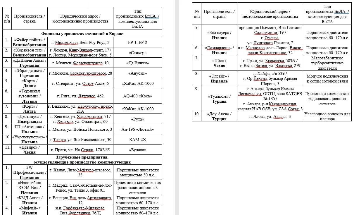 Минобороны РФ обнародовало названия и адреса филиалов украинских предприятий в Европе, где производят БПЛА для ударов по России.
