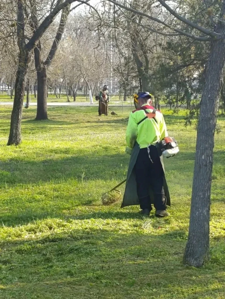 В парке культуры и отдыха: уборка туалетов и урн, покос травы, очистка территории и детской площадки, обновление лунок для полива саженцев.