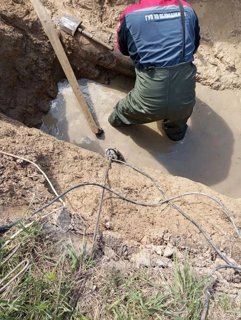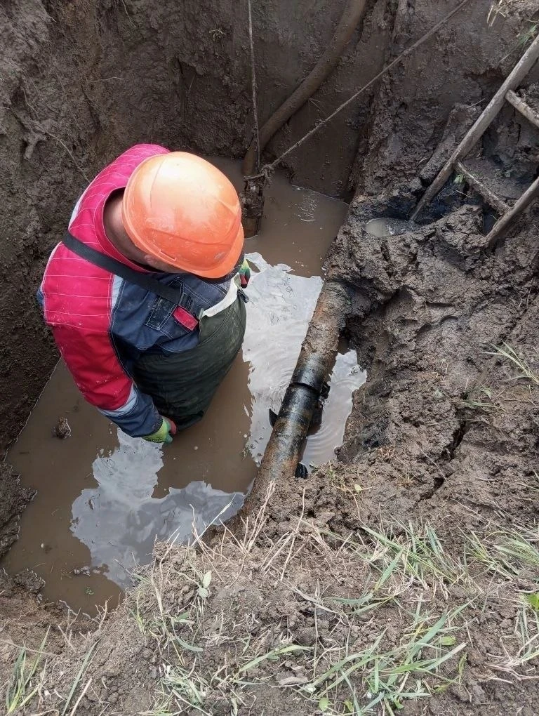 Кроме того, специалисты Скадовского ТПУ провели подготовительные работы в селе Тарасовка — раскопку траншей и изготовление необходимых запчастей для проведения ремонта. После этого на улице Центральной бригада установила вставку через две проходные муфты, а на улице Черноморской смонтировала ремонтный хомут-краб.