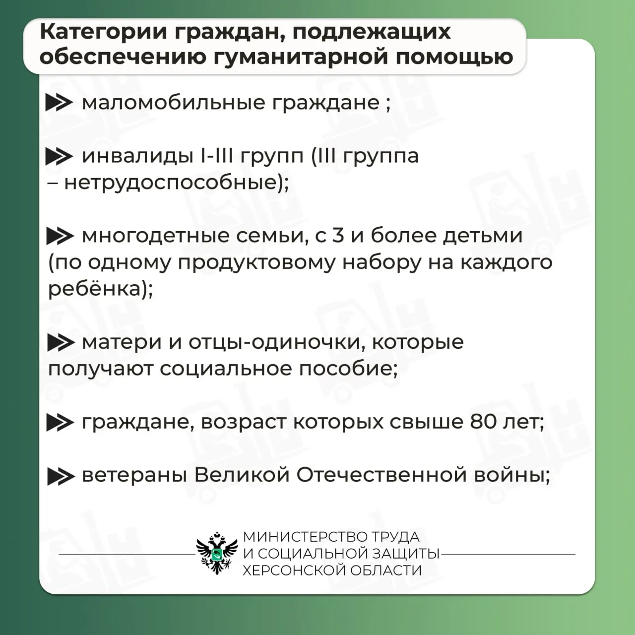 Кроме того, помощь могут получить определённые категории граждан.