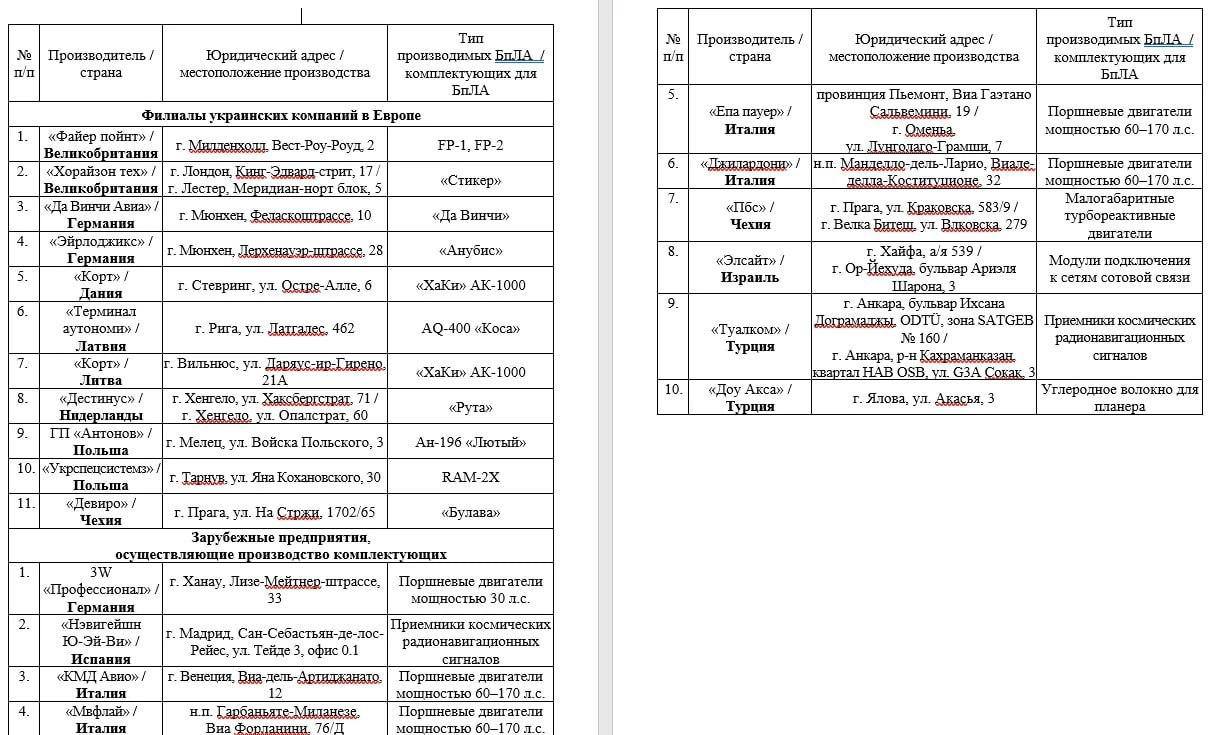 «Европейской общественности следует не только ясно понимать истинные причины угроз их безопасности, но и знать адреса, а также места расположения «украинских» и «совместных» предприятий по выпуску БПЛА и компонентов для Украины на территории своих стран».