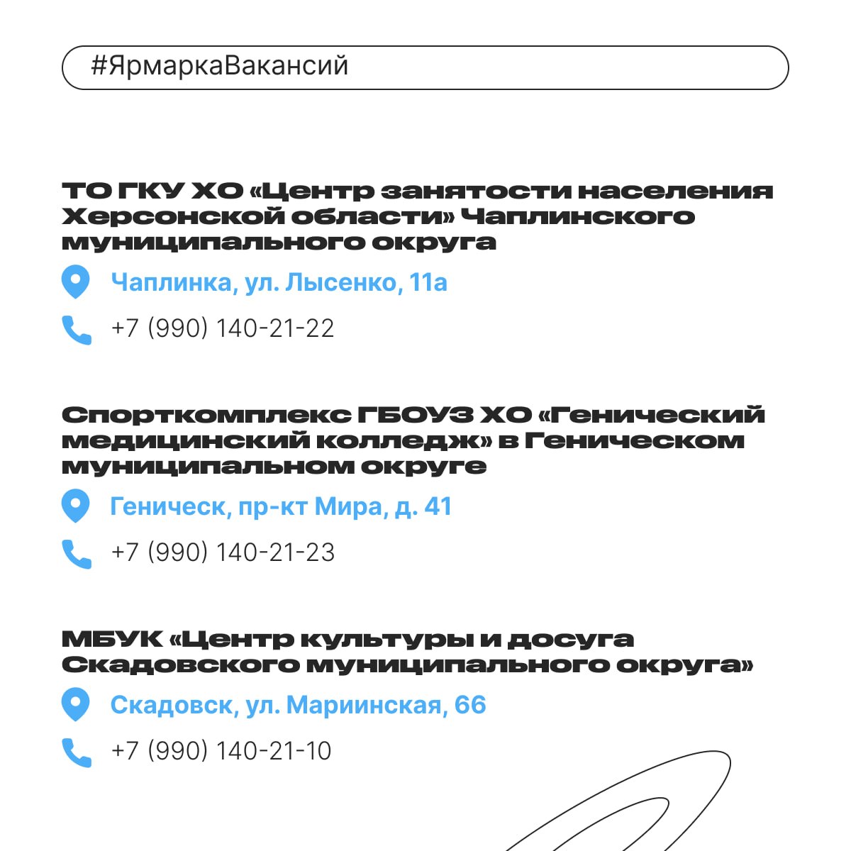 Скадовск: фестиваль профессий. Школьникам помогают выбрать ЕГЭ по профессиям будущего. Студентам — найти стажировку и научиться совмещать учёбу с работой. Опытным — сменить профиль, пройти тесты и уйти с собеседованием на месте.