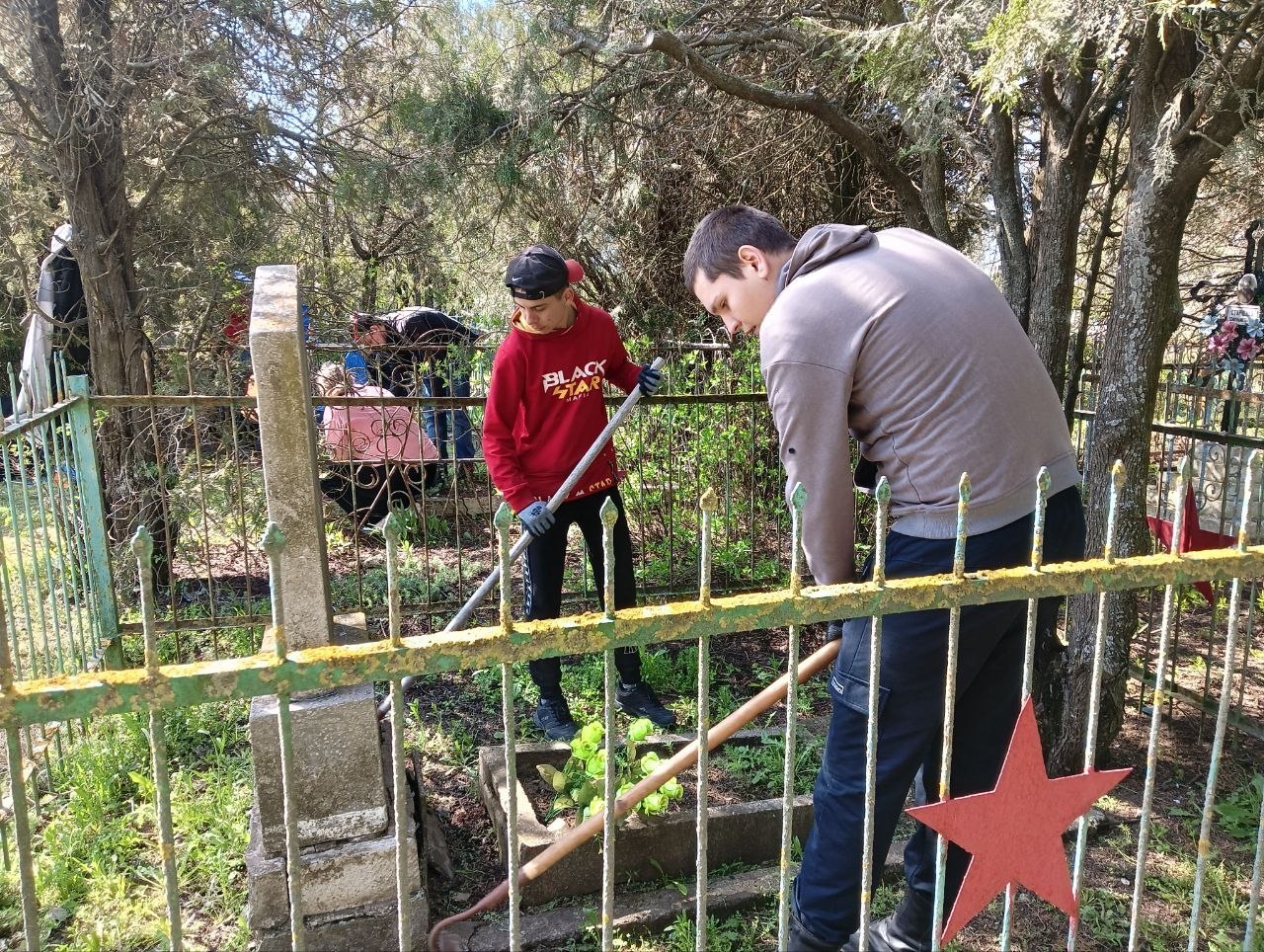 К акции подключились «Волонтёры Победы». Ребята начали с кладбища в Тавричанке: убрали листву и поросль, привели в порядок могилы, покрасили обелиски и очистили территорию вокруг.