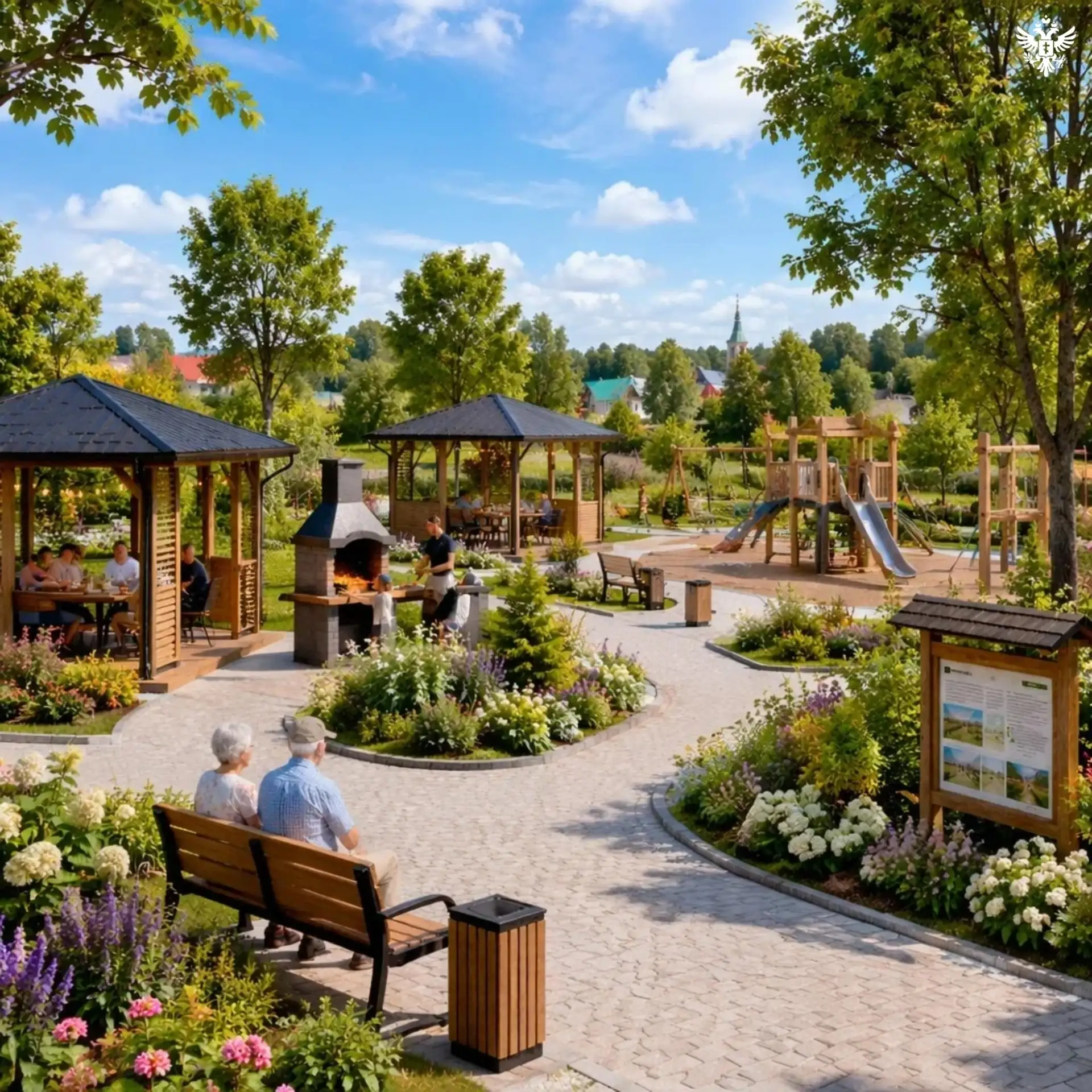 В парковой зоне села обустроят многофункциональное пространство: установят две крытые беседки, стационарный мангал, детскую площадку, пешеходные дорожки, скамейки и урны. Территорию озеленят и дополнят информационными стендами. Новая зона отдыха будет предназначена для семейного досуга, встреч, а также проведения культурных и праздничных мероприятий.