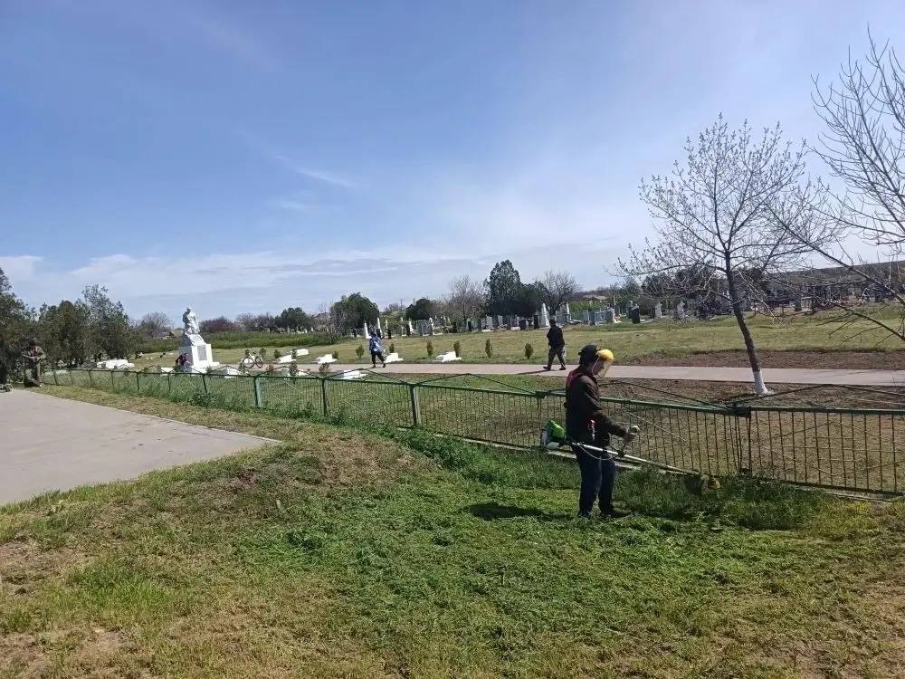 Помимо работы у памятников, волонтёры занимались побелкой фонарных столбов и фасадов, покосом травы и уборкой центральной площади.