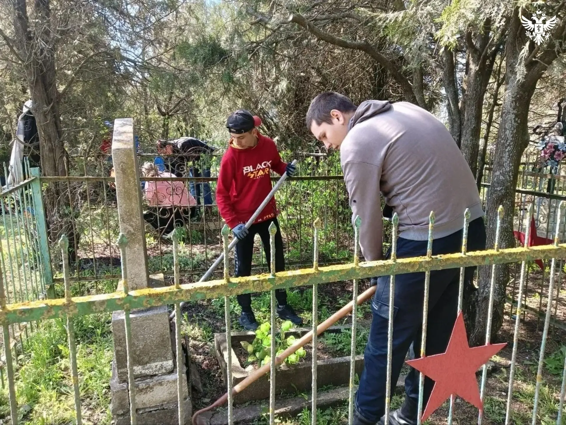 Активисты движения «Волонтёры Победы» провели работы по уборке могил фронтовиков. Добровольцы очистили надгробия от сухой листвы и сорной поросли, обновили краской памятные обелиски и привели в порядок прилегающую территорию.
