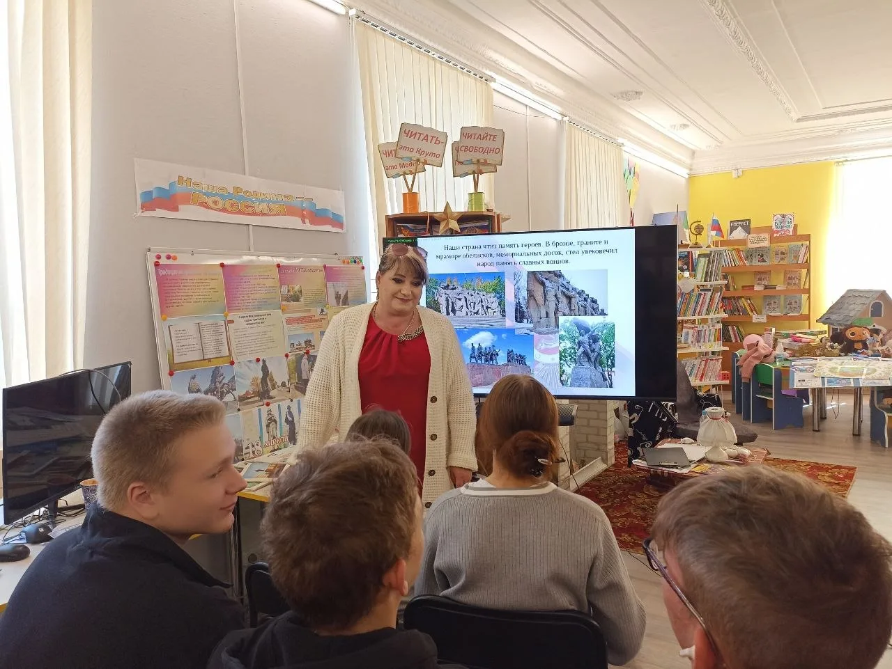 В библиотеке совершили виртуальную экскурсию по России и познакомились с самыми известными памятниками страны. Особое внимание уделили историческим памятникам и монументам Каховки и округа. Обсудили «Легендарную Тачанку», «Девушку в шинели», памятники Воинской Славы и другие значимые места нашего региона.